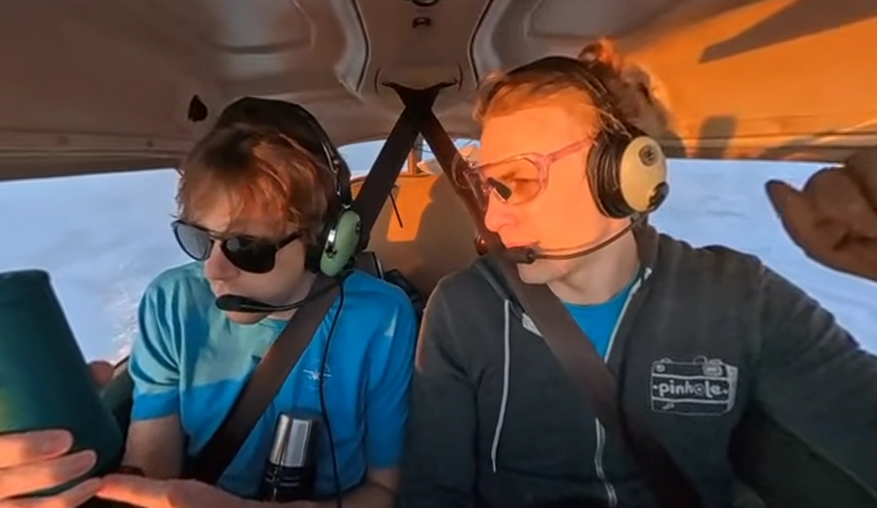 Shirley helps troubleshoot headset configuration in flight.